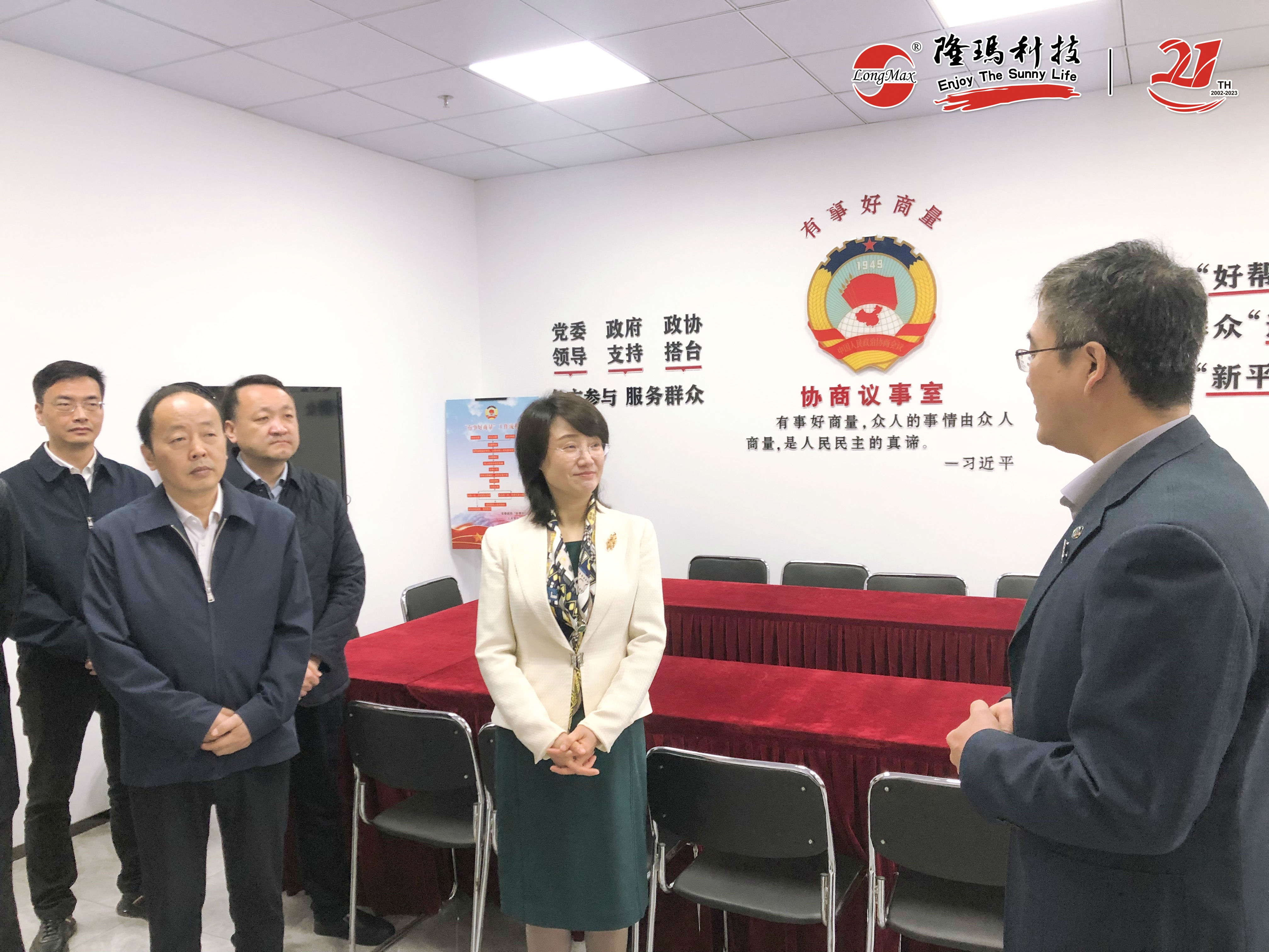 江蘇省人大代表、無錫市政協(xié)委員、隆瑪科技董事長楊朝輝分別向領導們介紹了公司概況,未來發(fā)展規(guī)劃及成立21年來在“科技創(chuàng)新”和“一帶一路”國際化發(fā)展戰(zhàn)略方面所取得的成績。同時也向領導們匯報了公司在社會服務、愛心公益事業(yè)方面所做的工作。