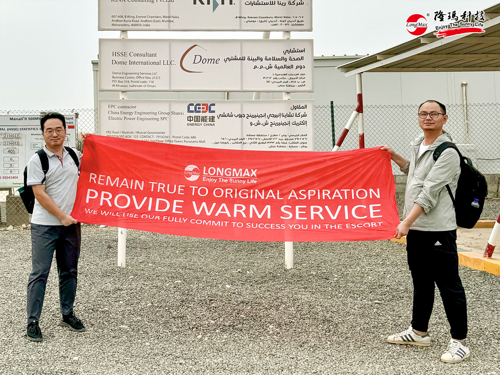 第三站,服務團隊馬不停蹄奔赴阿曼Manah II項目,冒著烈日風沙為客戶送去“服務及時雨”。
