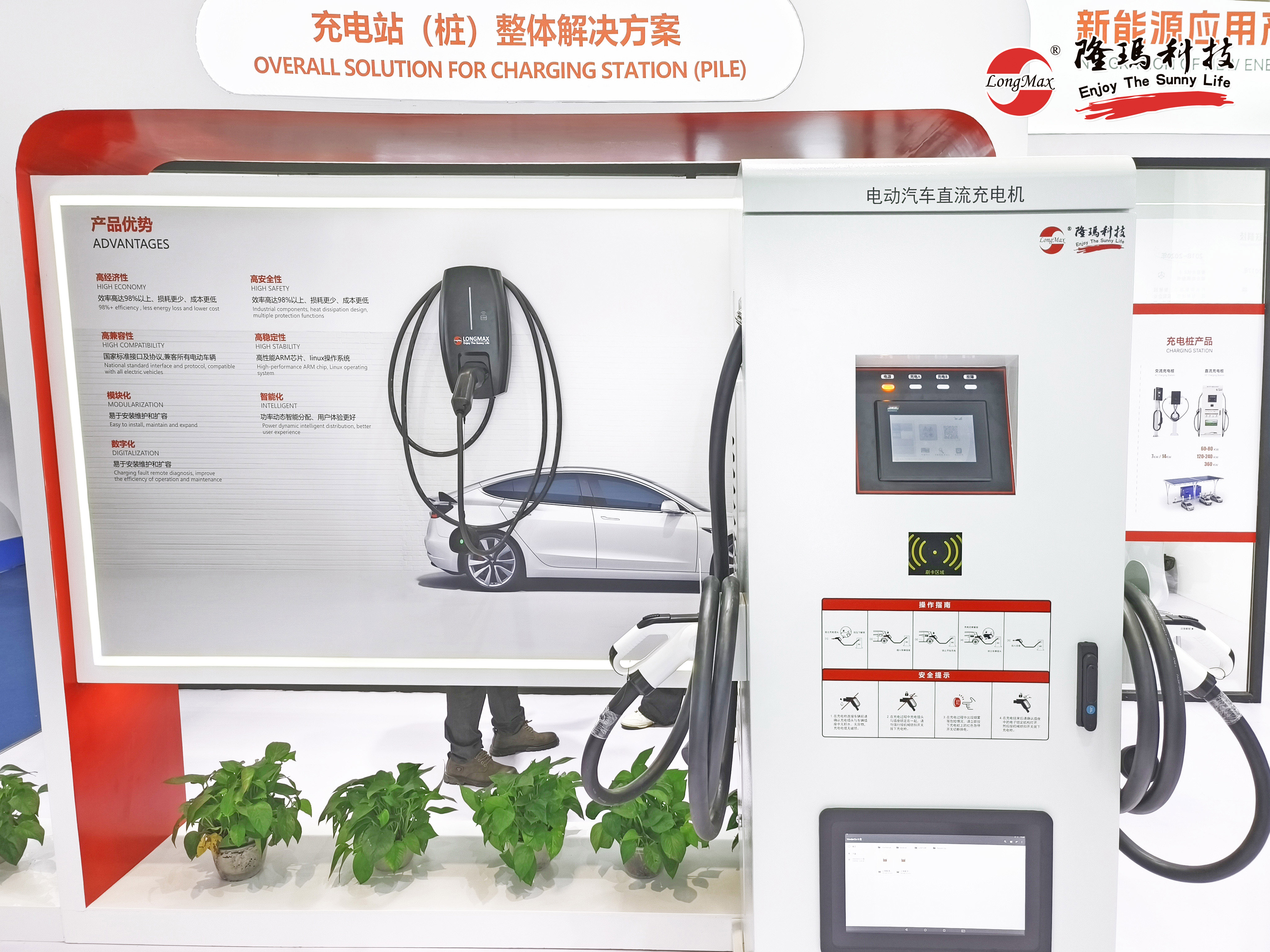 作為光儲(chǔ)充一體化解決方案的重要組成部分,充電樁一直是隆瑪科技重點(diǎn)發(fā)力的對(duì)象之一。在展會(huì)上,隆瑪科技交流與直流充電樁產(chǎn)品以“全能”姿態(tài)驚艷亮相,以充電效率高達(dá)98%以上的高經(jīng)濟(jì)性、多重保護(hù)兼?zhèn)涞母甙踩砸约芭c所有電動(dòng)車輛匹配的高兼容性收割參觀者們的關(guān)注目光。